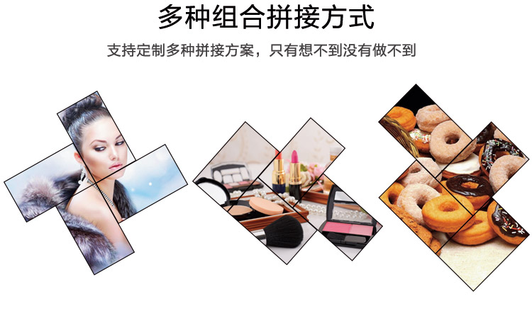 DID異形液晶拼接屏安裝的場(chǎng)所,絕對(duì)能讓消費(fèi)者有更強(qiáng)的視覺沖擊力,享受更好的消費(fèi)體驗(yàn)。下面就給大家展示下各種異形拼接屏的造型: