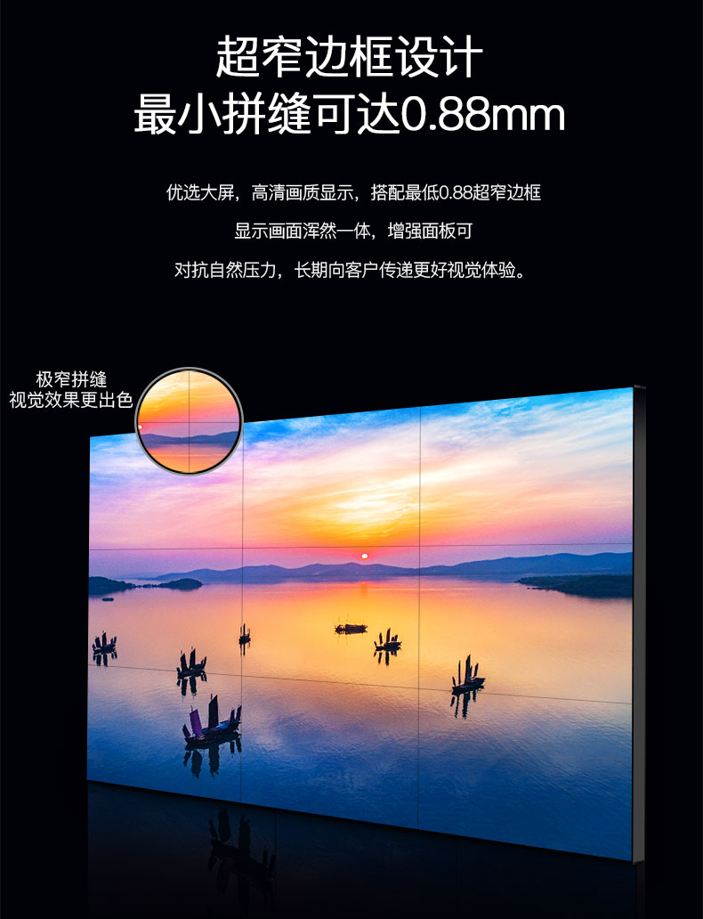 5、支持分辨率:液晶拼接的分辨率是它顯示效果非常重要的參數(shù)之一。分辨率的高低決定了顯示圖像的清晰度、畫面是否細(xì)膩等特點,一般它的分辨率為都非常高,如果分辨率過低則不要購買,否則顯示效果不理想。