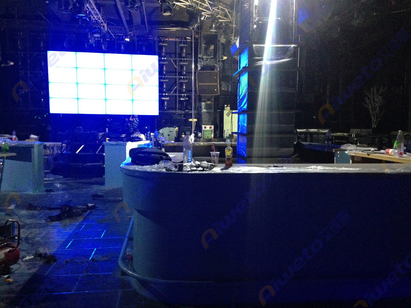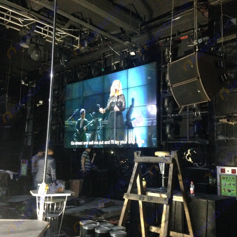 通過對客戶使用需求和部署環境的認真研究和考察,Aiweto(艾維圖)科技工程師給出了多套相關解決方案,最終選用了由16臺(Aiweto) 463.5mm液晶拼接單元組成的4×4屏幕液晶拼接墻。(Aiweto) 463.5mm液晶拼接單元是艾維圖科技推出的一款超窄邊液晶拼接顯示器,采用工業級面板,采用先進的集成處理芯片,性能穩定,運動圖像補償等獨有的先進技術,有效的保證了輸出圖像的效果,支持7×24小時開機,拼接邊縫小,適合各種娛樂夜場項目應用。