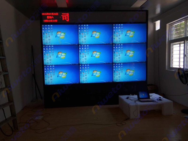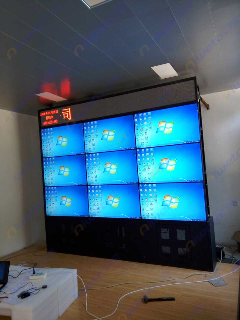 通過(guò)對(duì)客戶使用需求和部署環(huán)境的認(rèn)真研究和考察,Aiweto(艾維圖)科技工程師給出了多套相關(guān)解決方案,最終選用了由9臺(tái)(Aiweto) 46寸液晶拼接單元組成的3×3大屏幕液晶拼接墻。(Aiweto) 46寸液晶拼接單元是艾維圖科技推出的一款超窄邊液晶拼接顯示器,采用工業(yè)級(jí)面板,采用先進(jìn)的集成處理芯片,性能穩(wěn)定,運(yùn)動(dòng)圖像補(bǔ)償?shù)泉?dú)有的先進(jìn)技術(shù),有效的保證了輸出圖像的效果,支持7×24小時(shí)開(kāi)機(jī),拼接邊縫小,適合大屏液晶拼接項(xiàng)目應(yīng)用。