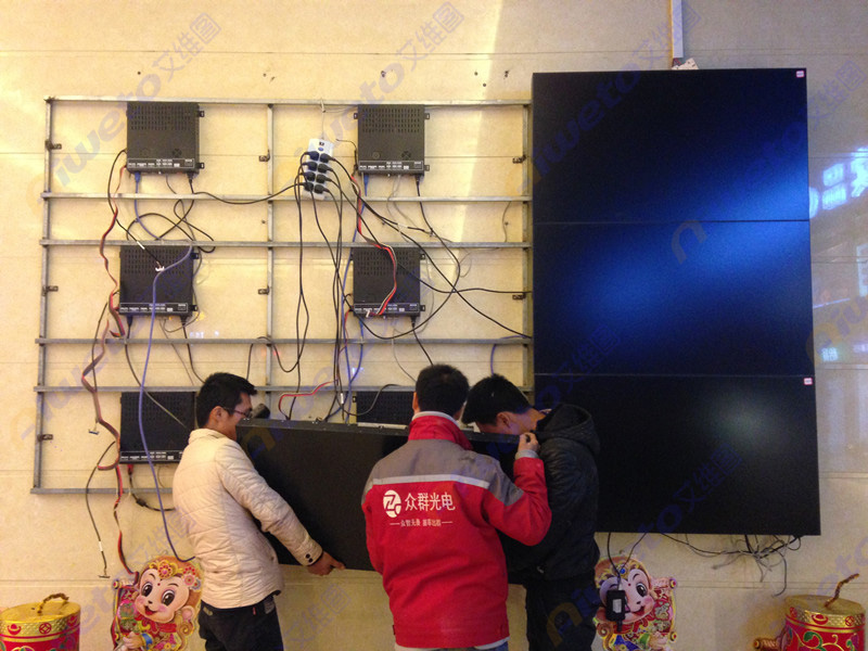 通過對客戶使用需求和部署環(huán)境的認真研究和考察,Aiweto(艾維圖)科技工程師給出了多套相關解決方案,最終選用了由9臺(Aiweto) 46寸液晶拼接單元組成的3×3大屏幕液晶拼接墻。(Aiweto) 46寸液晶拼接單元是艾維圖科技推出的一款超窄邊液晶拼接顯示器,采用工業(yè)級面板,采用先進的集成處理芯片,性能穩(wěn)定,運動圖像補償?shù)泉氂械南冗M技術,有效的保證了輸出圖像的效果,支持7×24小時開機,拼接邊縫小,適合大屏液晶拼接項目應用。