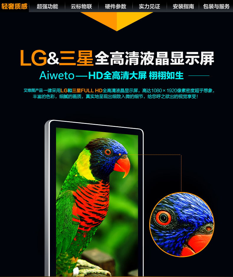 AW-CM430L01 立式觸摸一體機采用全高清(1920*1080)液晶面板,具有178度視角,高對比度和亮度,3D數(shù)字降噪,智能消除殘影、重影等失真現(xiàn)象,使得顯示畫面更清晰,穩(wěn)定,色彩更鮮艷。可廣泛運用于快餐店、訂票處、學(xué)校、機場、酒店大堂、交易所、電影院、企業(yè)、會展展館、商場等場所。