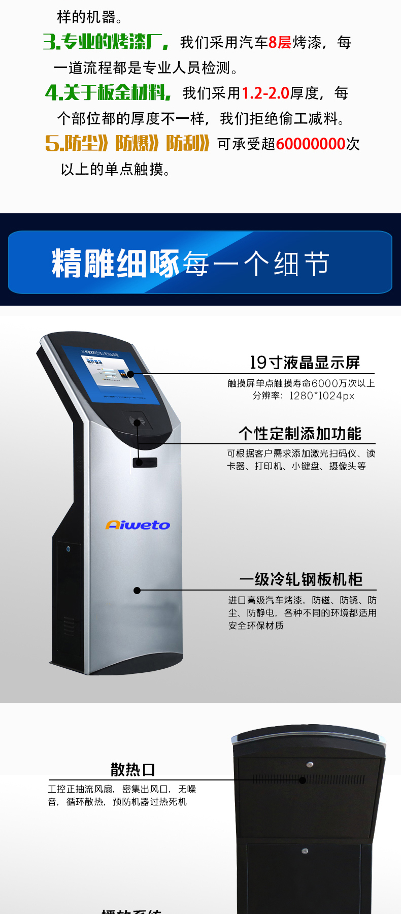 人體機學造型設計:人性化機型設計,符合人體站立姿態使用機器及視覺查看屏幕的最佳角度貼心細節設計,只為您使用更便捷。