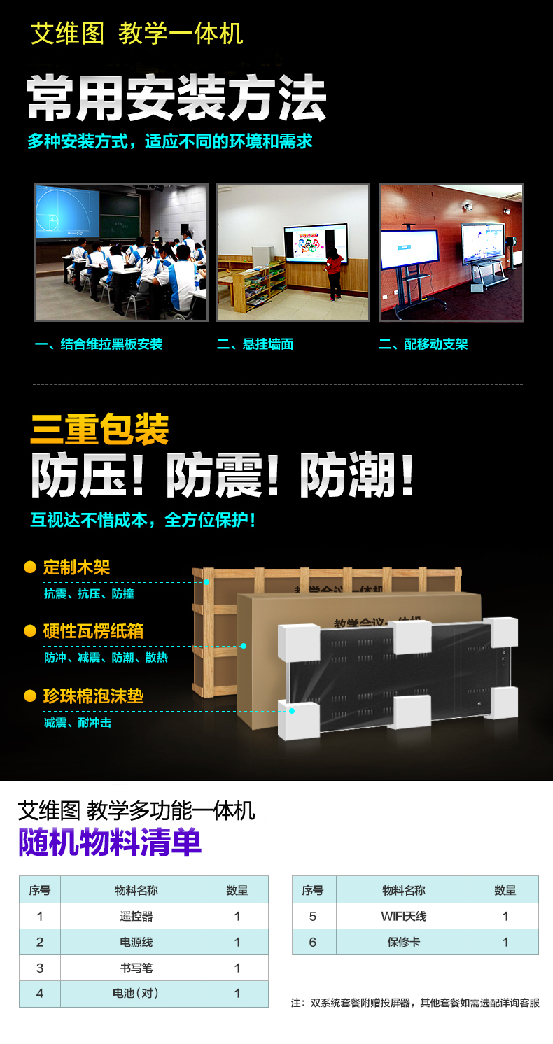 用戶手冊(cè),保修卡,合格證,電源線,遙控器、電池、白板光盤,觸摸筆,壁掛支架